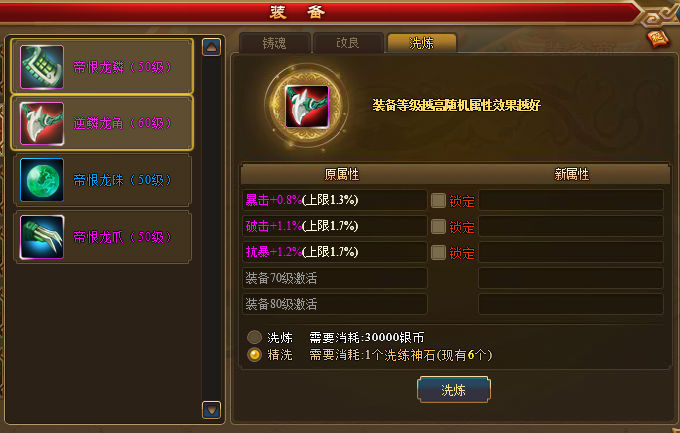 打开【锻造】功能界面,选择武将即可对其魂器装备进行铸魂培养、魂器进阶、改良和洗练。