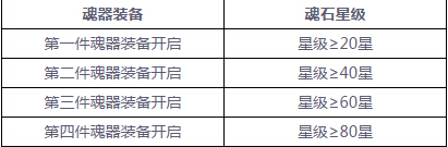 每个魂石所对应的魂器装备开启需要同时具备以下两个条件才能开启,具体如下:
