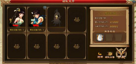 4、玩家每天可以不限次数的进入组队副本,但是每个副本仅当天前数次挑战成功有奖励(具体奖励次数见组队副本界面);