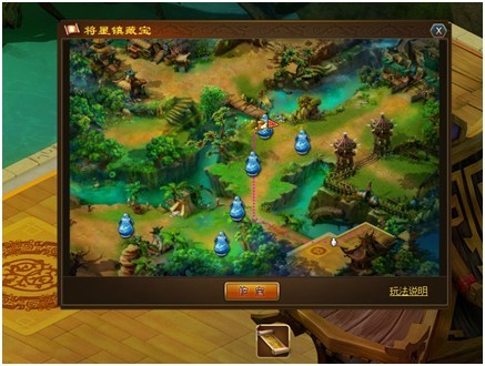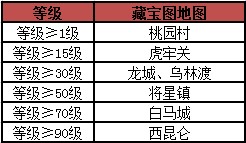 注:等级达到50级以上,玩家可以随机打开桃园村、虎牢关、龙城、乌林渡、将星镇的藏宝图地图。