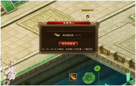 点击背包内“藏宝图”道具或是游戏主界面中下方的“藏宝图”图标,即可打开藏宝图。